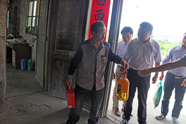 王宏董事長赴三界村走訪慰問 時間:2017-05-254476 5月25日上午,王宏董事長赴建工控股公司結對幫扶的邗江公道鎮三界村進行走訪慰問。三界村黨總支書記潘正高向王董事長報告了去年以來村集體經濟發展情況、扶貧項目進展成效及下一步設想。王董事長要求扶貧項目要規范運作、效益可持續。在現場察看村新建廠房項目過程中,王董事長強調要注重總體規劃、施工質量和安全,并對配套的水電、道路設施等提出建議。在端午節到來之際,王董事長還在村負責人陪同下,走訪慰問了村特困戶家庭,給他們送去了粽子、大米和油等慰問品。