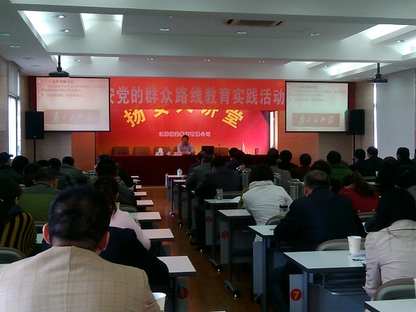 揚(yáng)安集團(tuán)舉辦黨的群眾路線教育實(shí)踐活動(dòng)專(zhuān)題講座 時(shí)間:2014-04-034362 4月3日上午,揚(yáng)安集團(tuán)舉辦黨的群眾路線教育實(shí)踐活動(dòng)專(zhuān)題講座,黨委書(shū)記李幼杰主持,揚(yáng)州市委黨校王淦教授主講“堅(jiān)持群眾路線,為民務(wù)實(shí)清廉”。講座主會(huì)場(chǎng)設(shè)在集團(tuán)總部,黨委領(lǐng)導(dǎo)班子全體成員、總部部室管理人員、在揚(yáng)分(子)公司黨員、入黨積極分子代表70余人參加;駐外分公司黨支部采用電話連線形式,組織黨員在各分會(huì)場(chǎng)聆聽(tīng)。