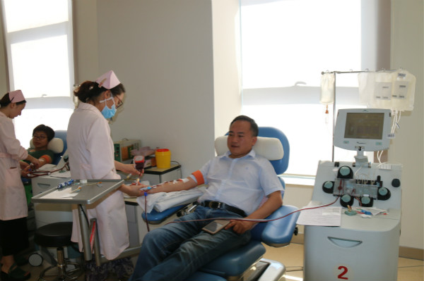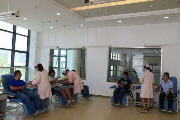 揚州歷史罕見的夏季持續(xù)高溫,無償獻血志愿者大幅減少,而臨床用血不減,血庫進入血液需求緊張階段?!胺瞰I熱血,挽救生命”,炎炎烈日阻擋不了建工控股系統(tǒng)員工的獻血熱情。建工控股公司黨委特意提前安排系統(tǒng)年度獻血活動,7月21日上午,120多名黨員、干部、職工在中心血站成功獻血40000多毫升,江蘇華建總經濟師、地產集團總經理徐剛等部分員工自愿參加了血小板的采獻,為這個炎炎夏日增添了一道美麗風景。