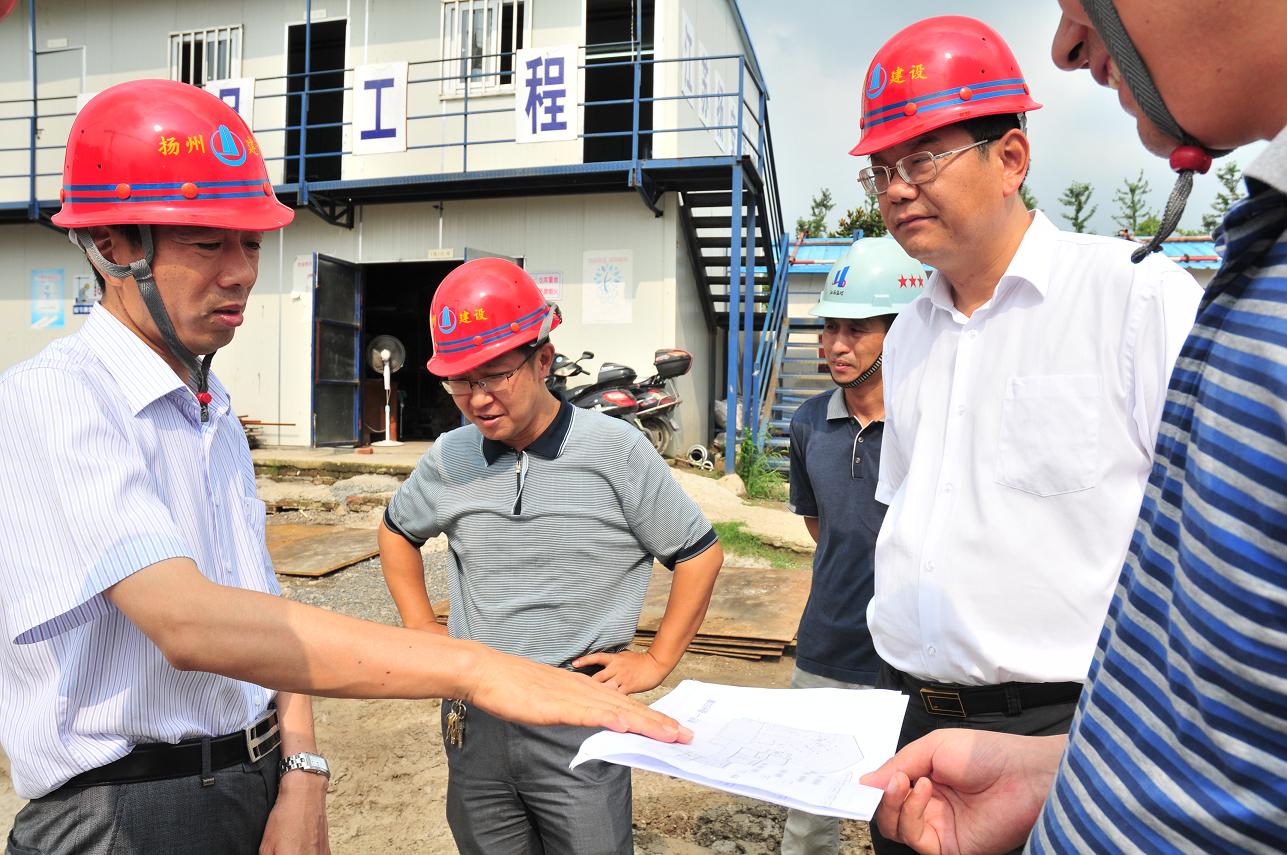 陳揚副市長視察建設大廈工地 時間:2011-08-228080 陳揚副市長視察建設大廈工地 8月12日下午,揚州市政府副市長陳揚、市建設局局長楊正福一行前往江蘇華建代建的揚州建設大廈暨規劃展覽館、市民中心項目工地現場視察。揚州建工控股公司、江蘇華建董事長陸金龍陪同視察,并將工程施工進展情況向陳副市長作了簡要匯報。陳副市長對建設大廈總體施工進展表示滿意,并提出希望所有參建單位精心組織,科學管理,確保這一政府重點工程建設順利推進。公司領導程杰等一起陪同視察。
